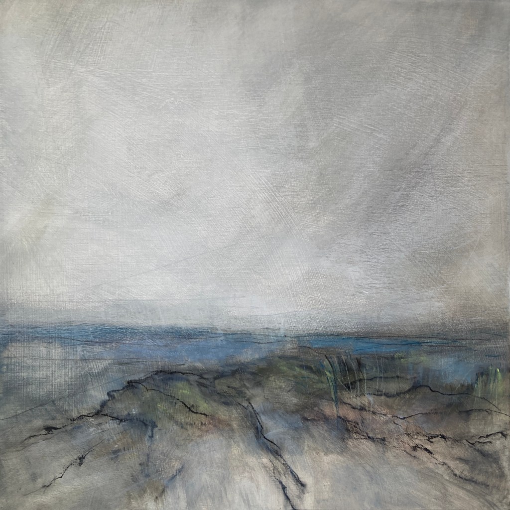 “An horizon always contains a trait… Indications of shorelines, estuaries, marshes are evident. Always referencing something tangible, be it the observed or the recollected, just leaving behind the elemental colours through a tactile surface”